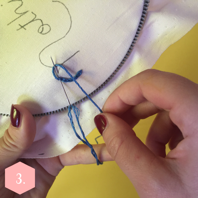 3. Passer le fil sous l’aiguille et tirer le fil.