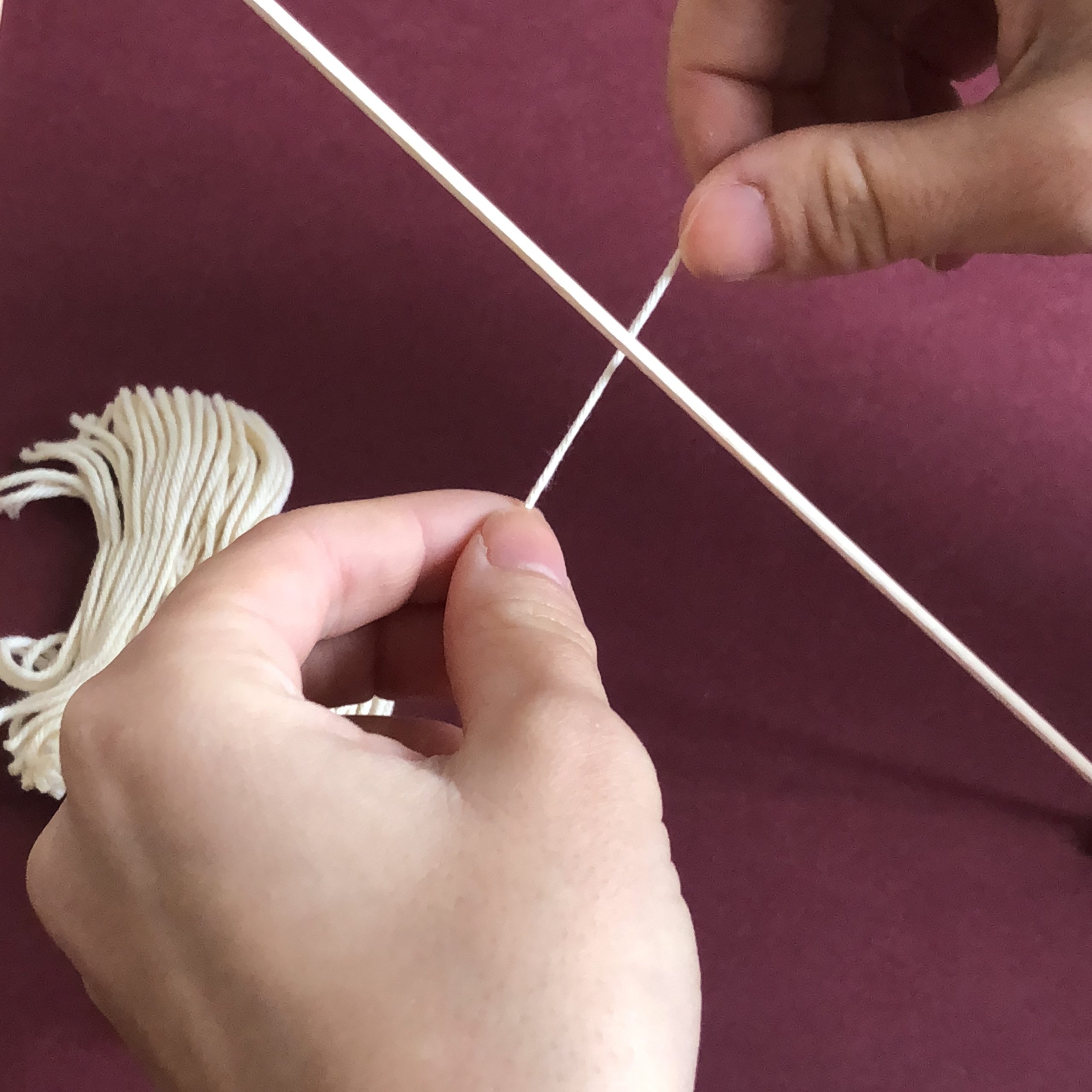 Petite astuce si vous utilisez de la laine et que vos brins n’ont pas assez de “tenue” vous pouvez les amidonner : Vous trouverez des cristaux d’amidon à dissoudre dans de l’eau chaude dans n’importe quelle quincaillerie.