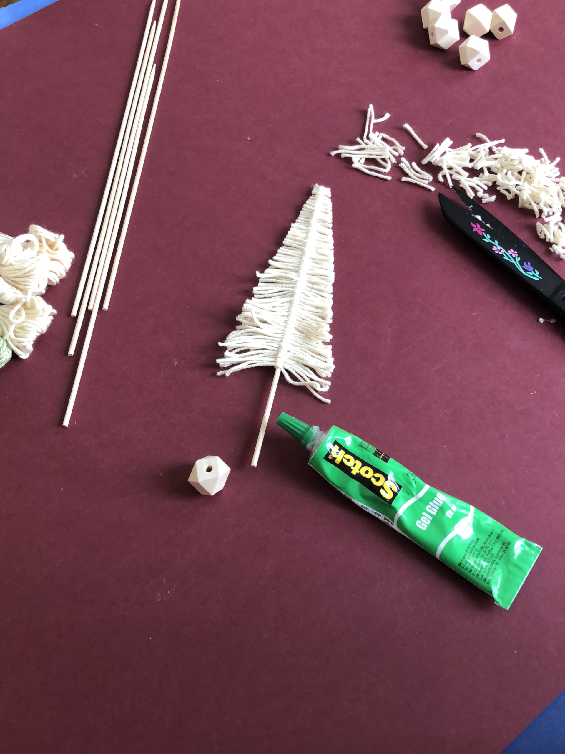 Dernière touche à ce DIY ultra-simple, un petit point de colle pour maintenir le sapin dans son socle (la perle en bois).